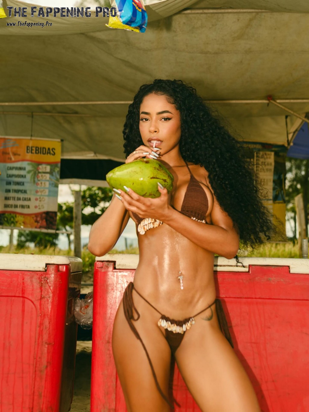 Lorena Maria (@badgallore) is offering significant island siren power, leaning over that wood imprison just a little white crochet swimwear that hardly covers her complete, buoyant tits while her wild curly hair impacts in the wind. Those succulent butt cheeks splash out the sides of all-time lows like they’re asking to be ordered, and she recognizes precisely what she’s finishing with that sultry side-eye and shiny lips. From the coastline shack shot where she’s shaking a brownish string swimwear, coconut in hand, appearing like the major personality of every holiday dream, to the back sight on the plethora where her round, oiled-up booty is the celebrity of the program in that eco-friendly band– this woman transforms every structure right into pure thirst gas.