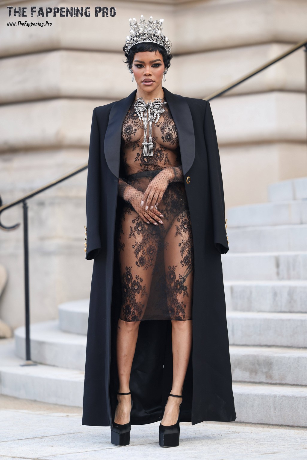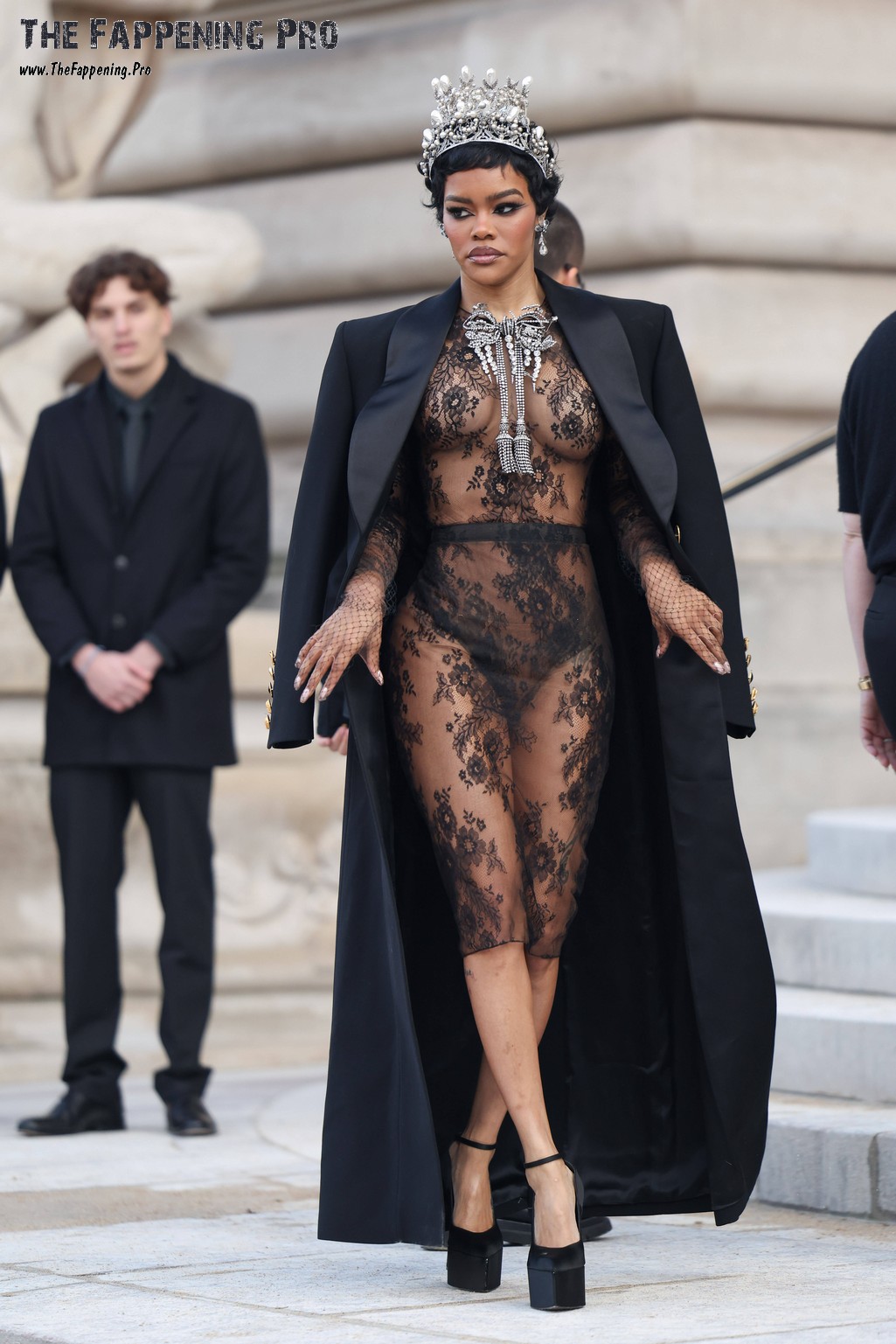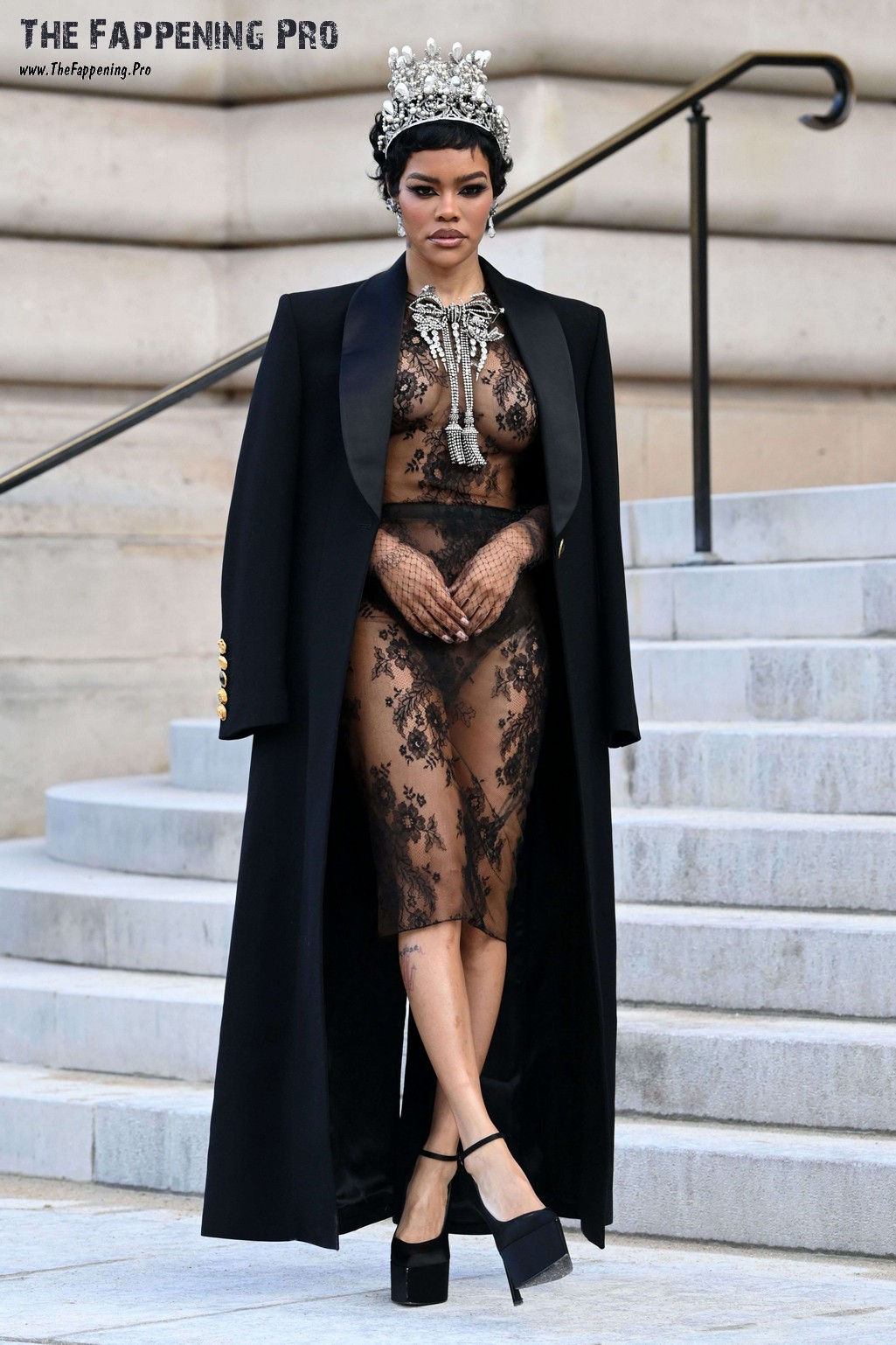 The brutal magnificence from Harlem, 35-year-old Teyana Taylor, shocked the viewers once more together with her revealing outfit. On the Schiaparelli Haute Couture Week SS26, the singer appeared in a see by nylon outfit coated with a large cape. Nonetheless, the cape was open to point out off her naked boobs. Sadly, you may see the pasties on her nipples, so this model of Teyana Taylor’s see by nudity shouldn’t be fully trustworthy.